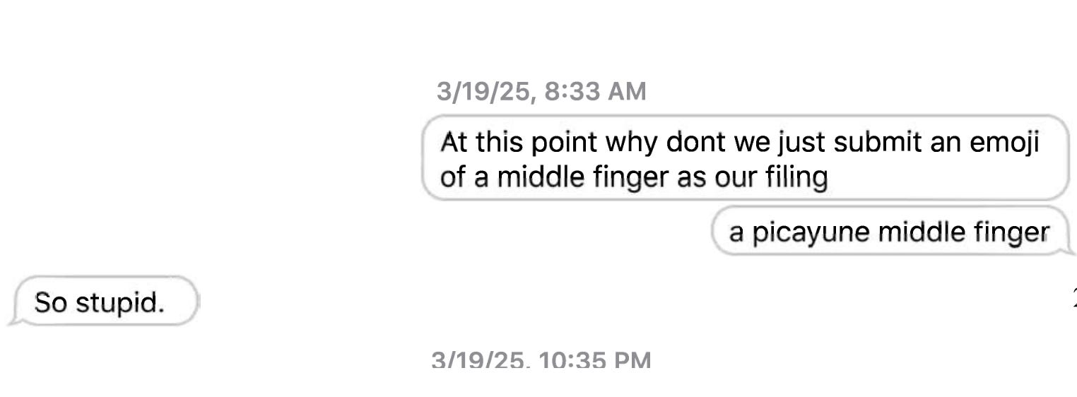 In now-public text messages, whistle-blower Reuveni spoofed the Trump administration’s disrespect for Boasberg by proposing submitting “an emoji of a middle finger as our filing” to the court.