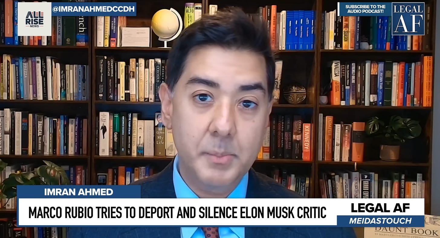 Right now, the Center for Countering Digital Hate’s founder and CEO Imran Ahmed is one of those people, waging an important legal battle against Secretary of State Marco Rubio. A federal judge temporarily blocked the government from deporting Ahmed, a green card holder from the United Kingdom who has been living here for years with his U.S. citizen wife and daughter.