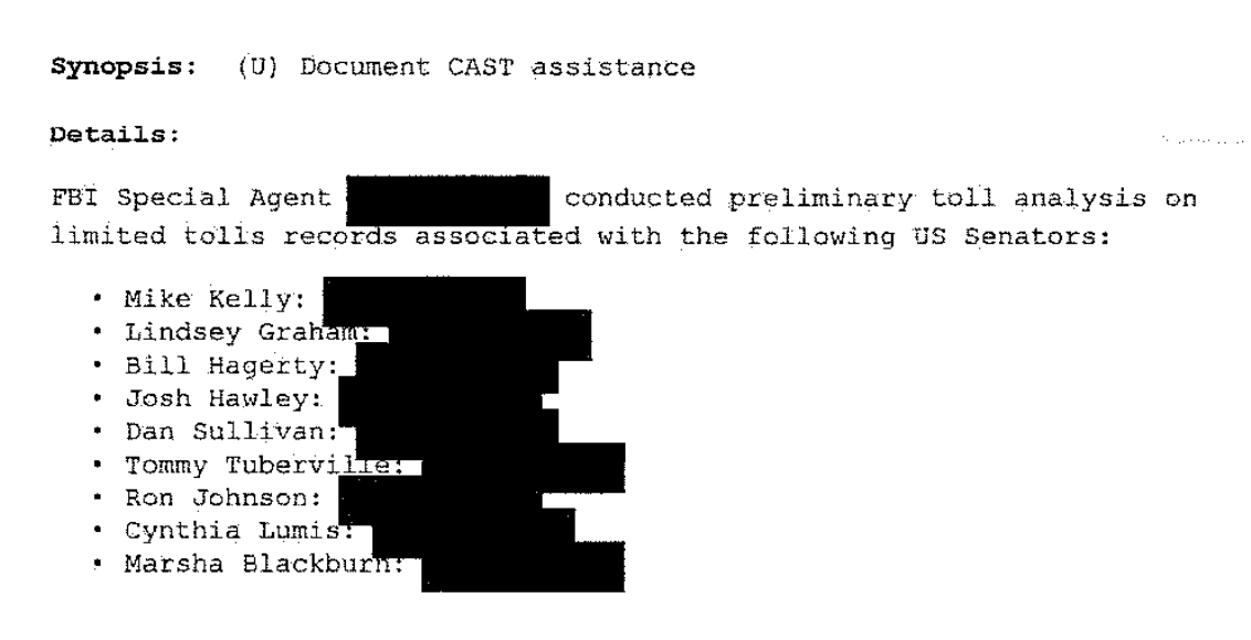 Several of the senators on the list of the toll records reportedly received those calls or text messages, including Sens. Josh Hawley, Dan Sullivan, Ron Johnson, and Tommy Tuberville.