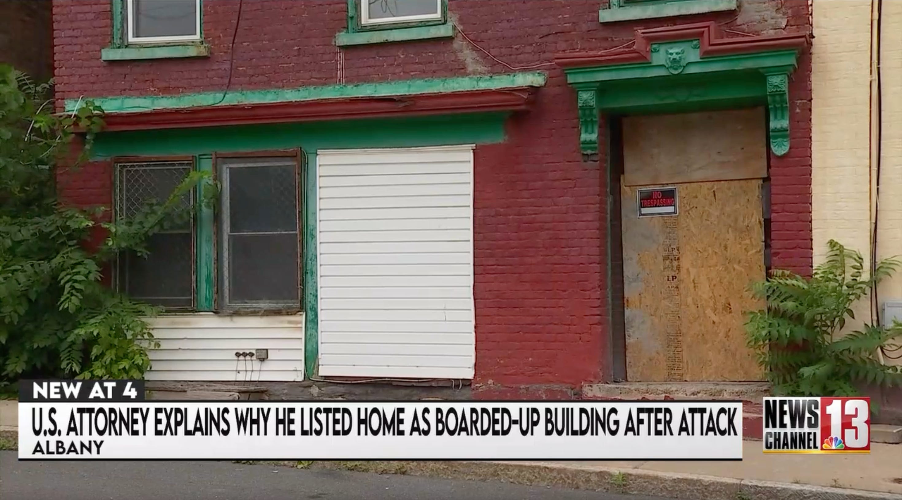 The Albany Times Union noticed a remarkable detail in Sarcone’s sworn deposition to the sheriff’s office about his encounter with Morales-Garcia: an address, which reporters visited only to find a boarded up house. Under federal law, U.S. Attorneys must reside in the districts in which they serve, and local NBC station WNYT broadcast images of the “NO TRESPASSING” sign on the plywood-blockaded entrance.